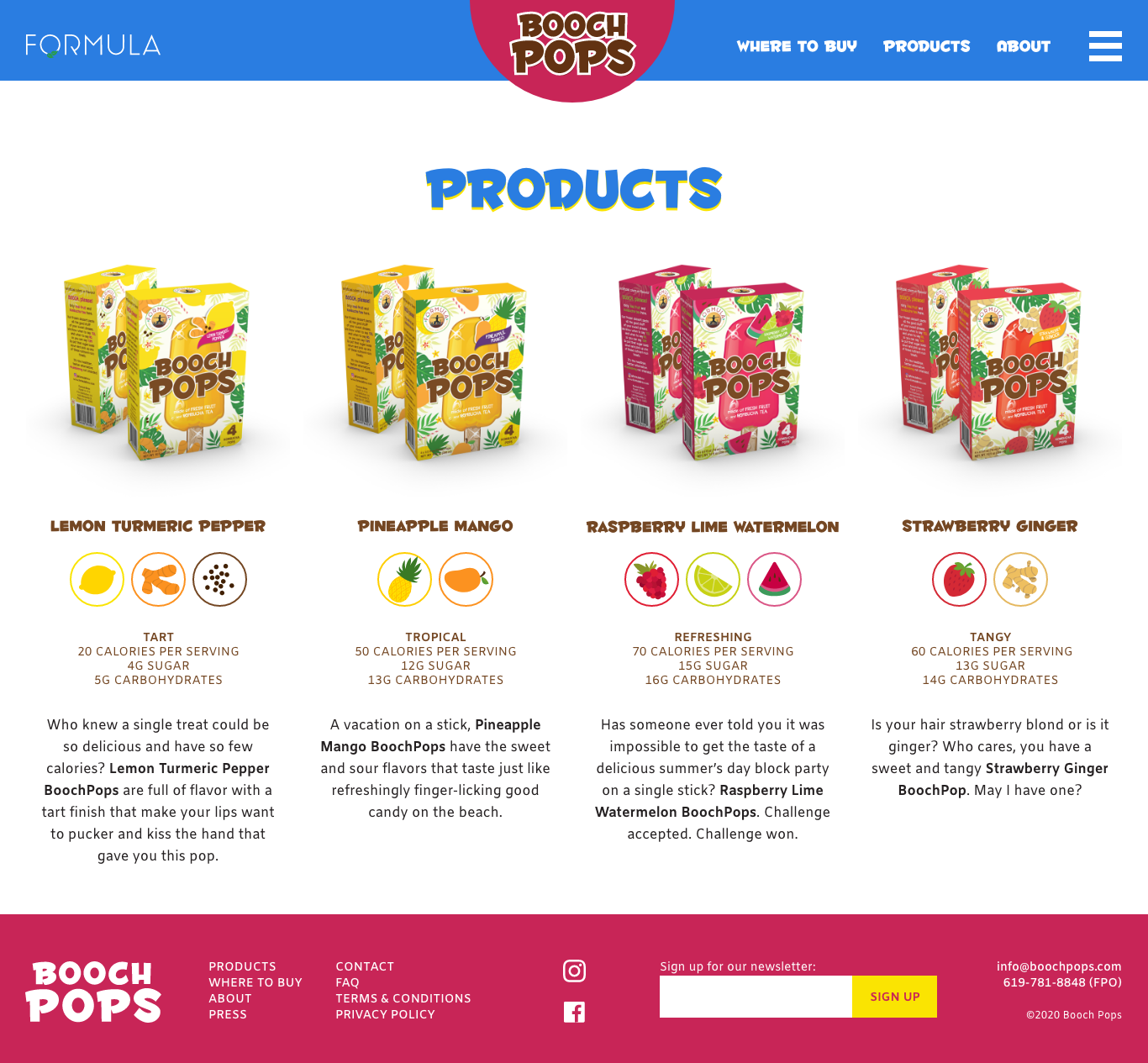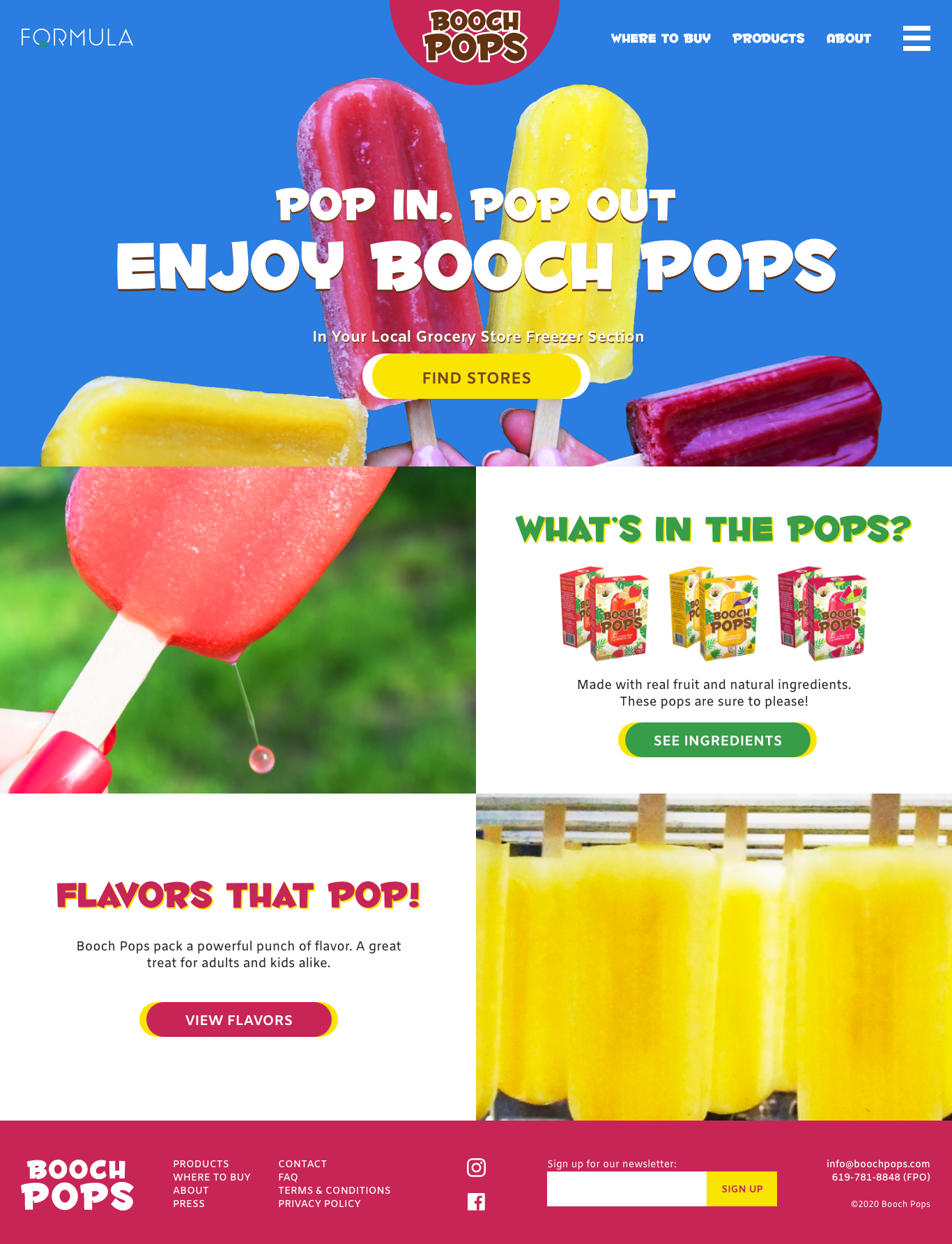 Website design for Booch Pops, creators of frozen kombucha pops for adults.