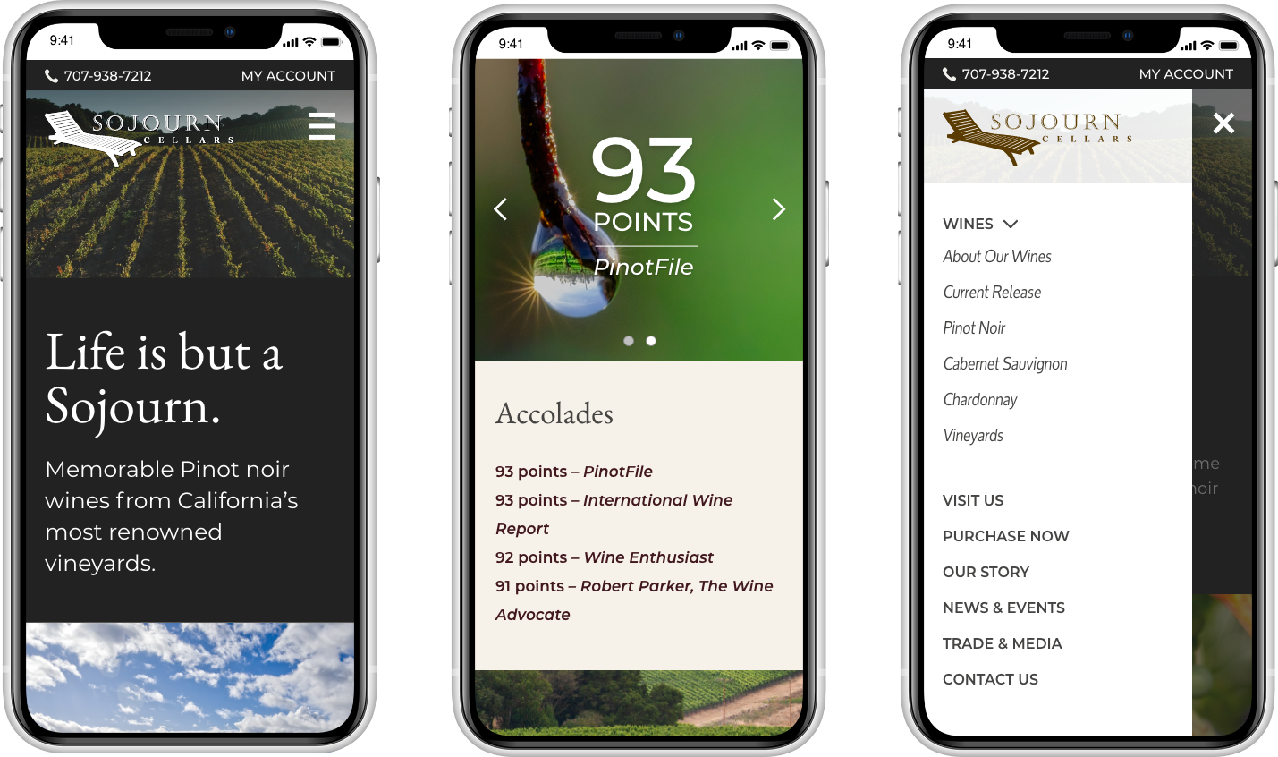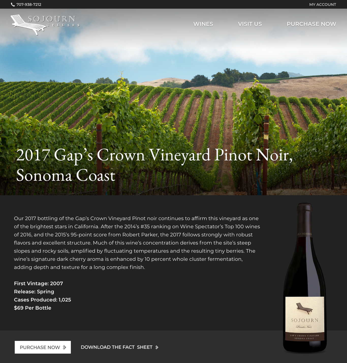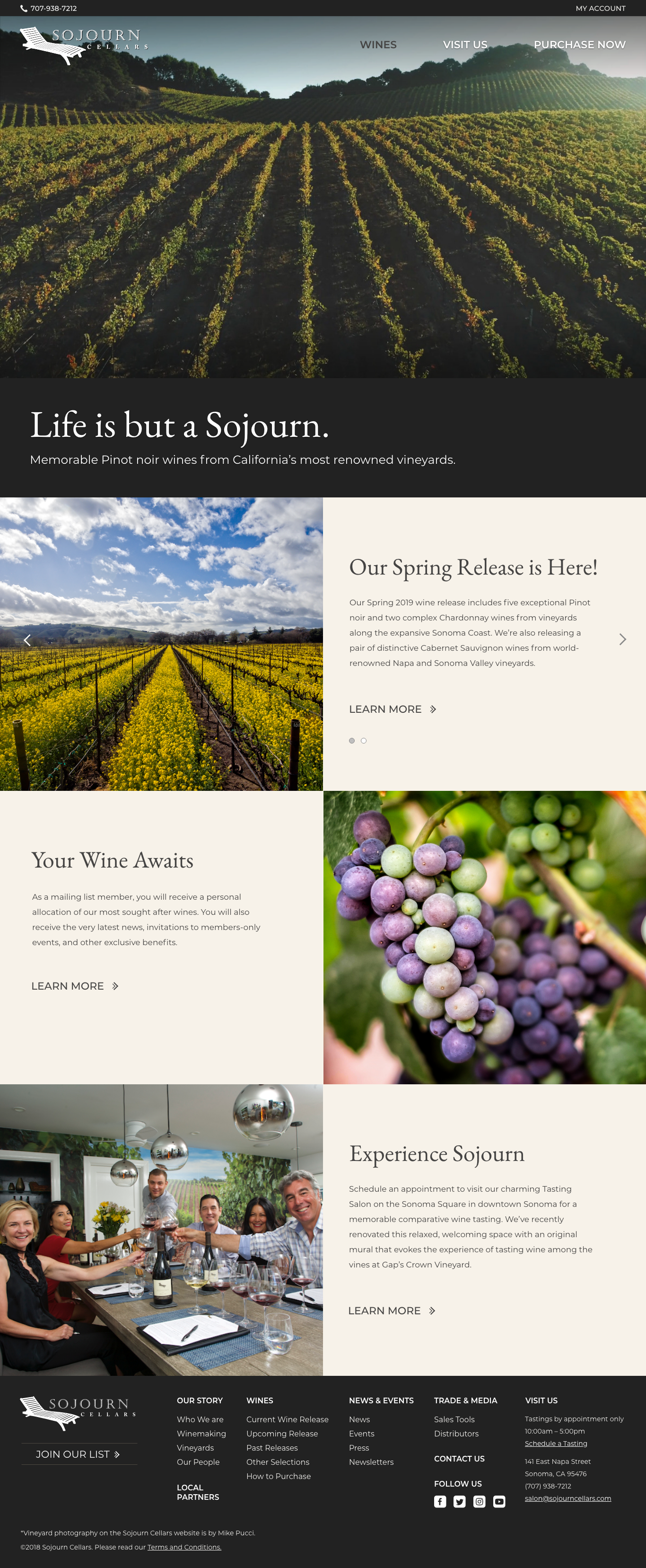 Website design for Sonoma and Napa Valley based Sojourn Cellars, producers of highly acclaimed wines.